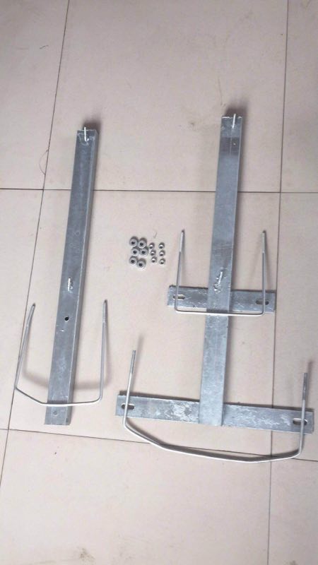 鐵路防護刺絲滾籠配件規(guī)格參數(shù):立柱支架采用50*30mm 壁厚2mmQ235矩形鋼管和寬50mm厚度4.5mm長度分別為246mm和428mm的兩塊Q235扁鐵焊接制作。矩形鋼管上部焊接掛鉤采用長度30mm絲徑5mm冷拔鋼筋制作,加密支架采用同樣與立柱支架的矩形鋼管制作,表面進行熱鍍鋅處理,鍍鋅量270g/㎡。階梯支架與立柱支架相應采用材料一致,只是高度為1005mm,普通立柱支架為730mm,一般3m間距中間按一處加密支架以增牢堅固性。